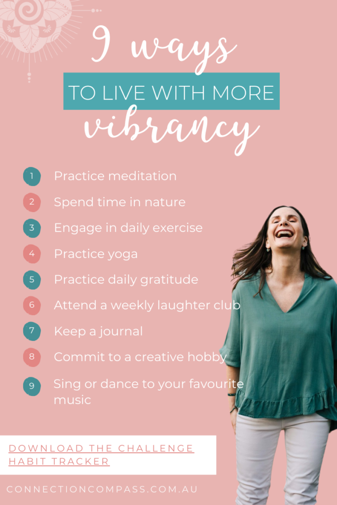 1. Pick one thing from the ‘9 Ways to Live with More Vibrancy’ image above and commit to doing it every day for one week. (Or come up with your own idea based on what you know lights you up.)